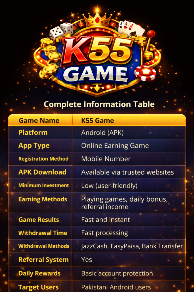 K55 Game apk Download Real Money Game in Pakistan 2026